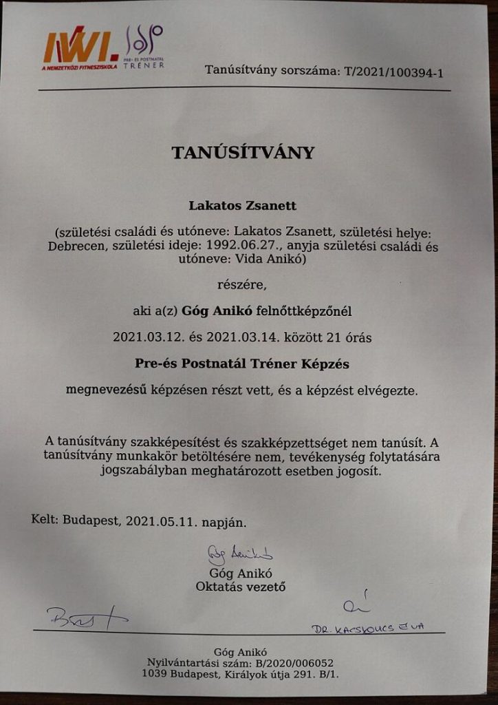 Lakatos Zsanett vagyok, pre- és postnatális (szülés előtti és utáni) tréner, fitnesz edző, valamint a Kismamapercek megalkotója.